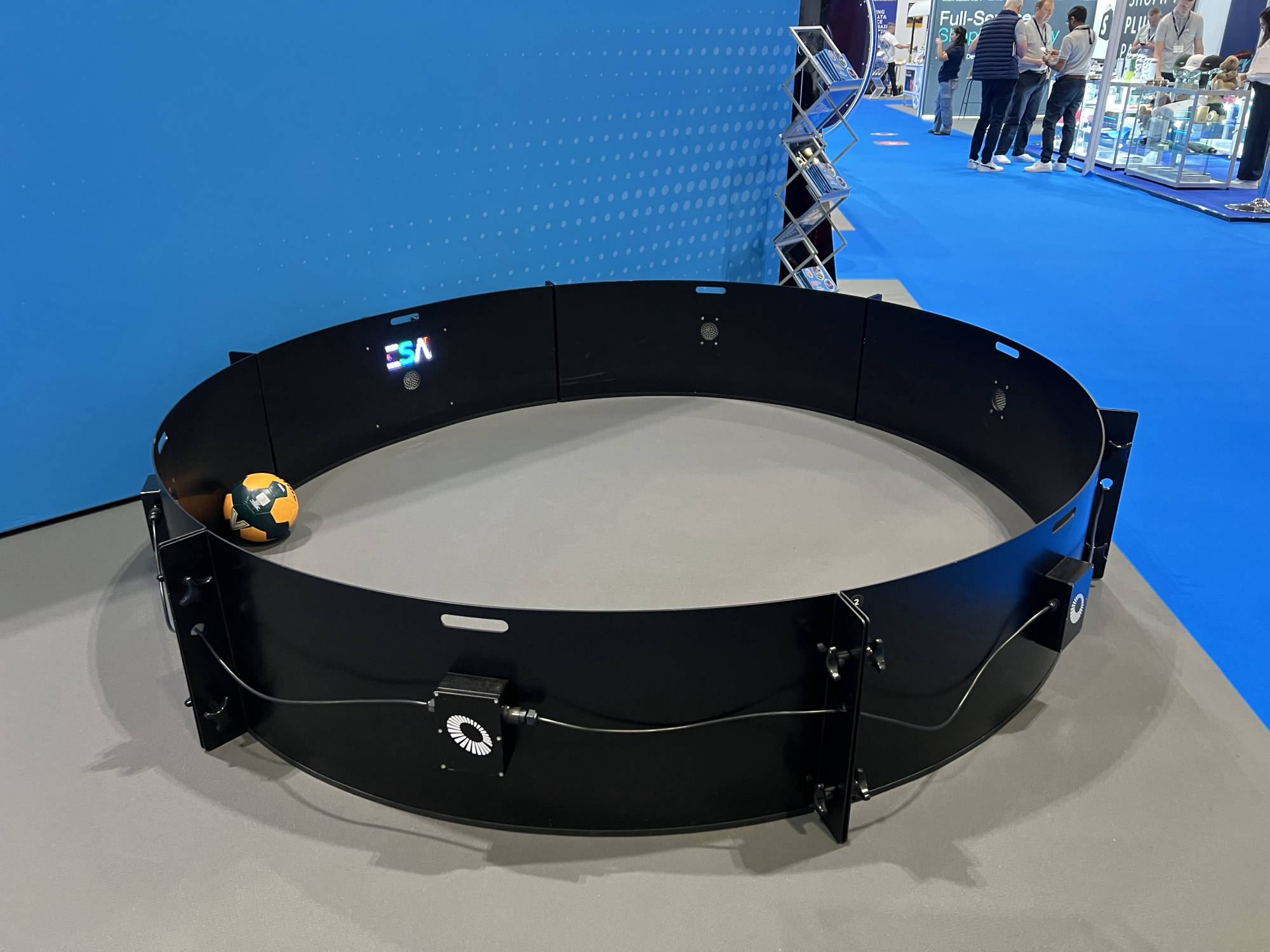 Each player begins by stepping into the circular arena. Once they are ready, they will push the start button. The arena features 6 panels which each have their own LED light. The LEDs illuminate at different times throughout the game. The player must kick the ball against the panels which are lite up in blue or green. If they strike a panel which is not lit, they will receive a fault point which is marked in red on the electronic screen.