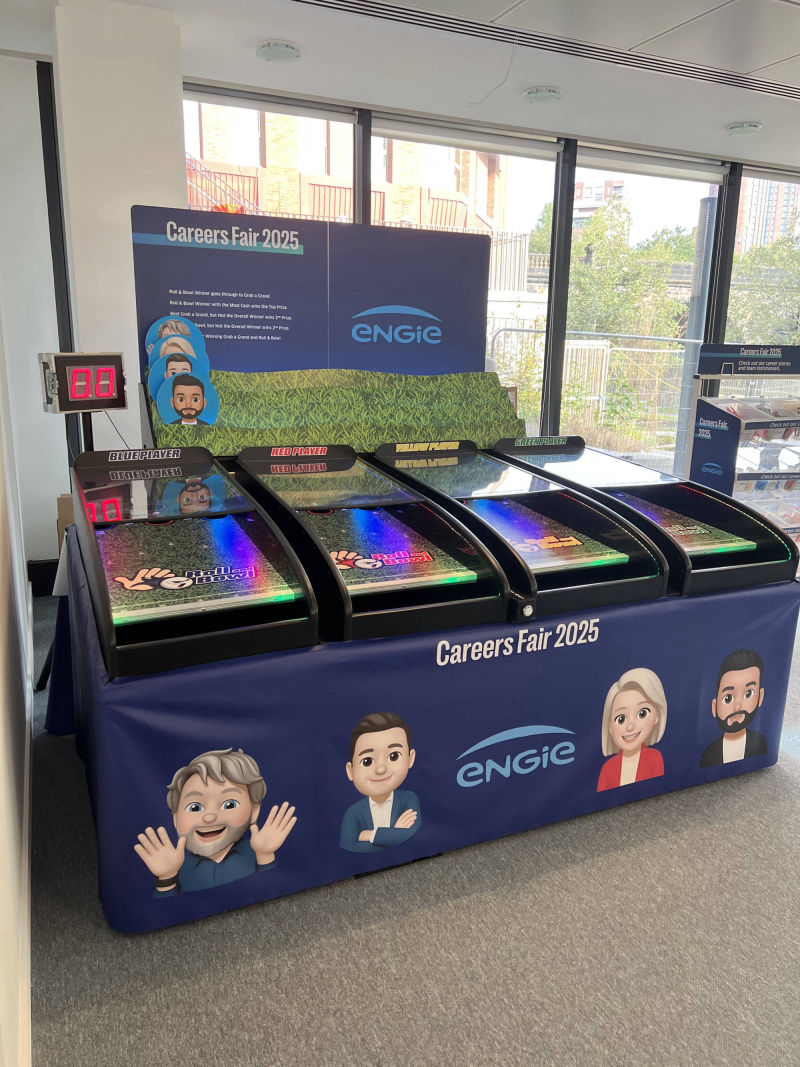 Our in-house branding team can transform many of our range of interactive games with awesome full colour branding, all printed and applied in house allowing us to deliver a fully branded game to your next corporate event, promotion, activation or exhibition stand.