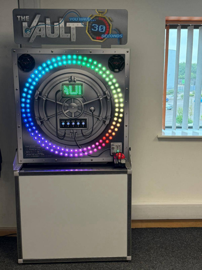 Our in-house team can brand our vault games with custom skirts and fully branded top panels with your own logo or graphic design to match your promotion or activation.