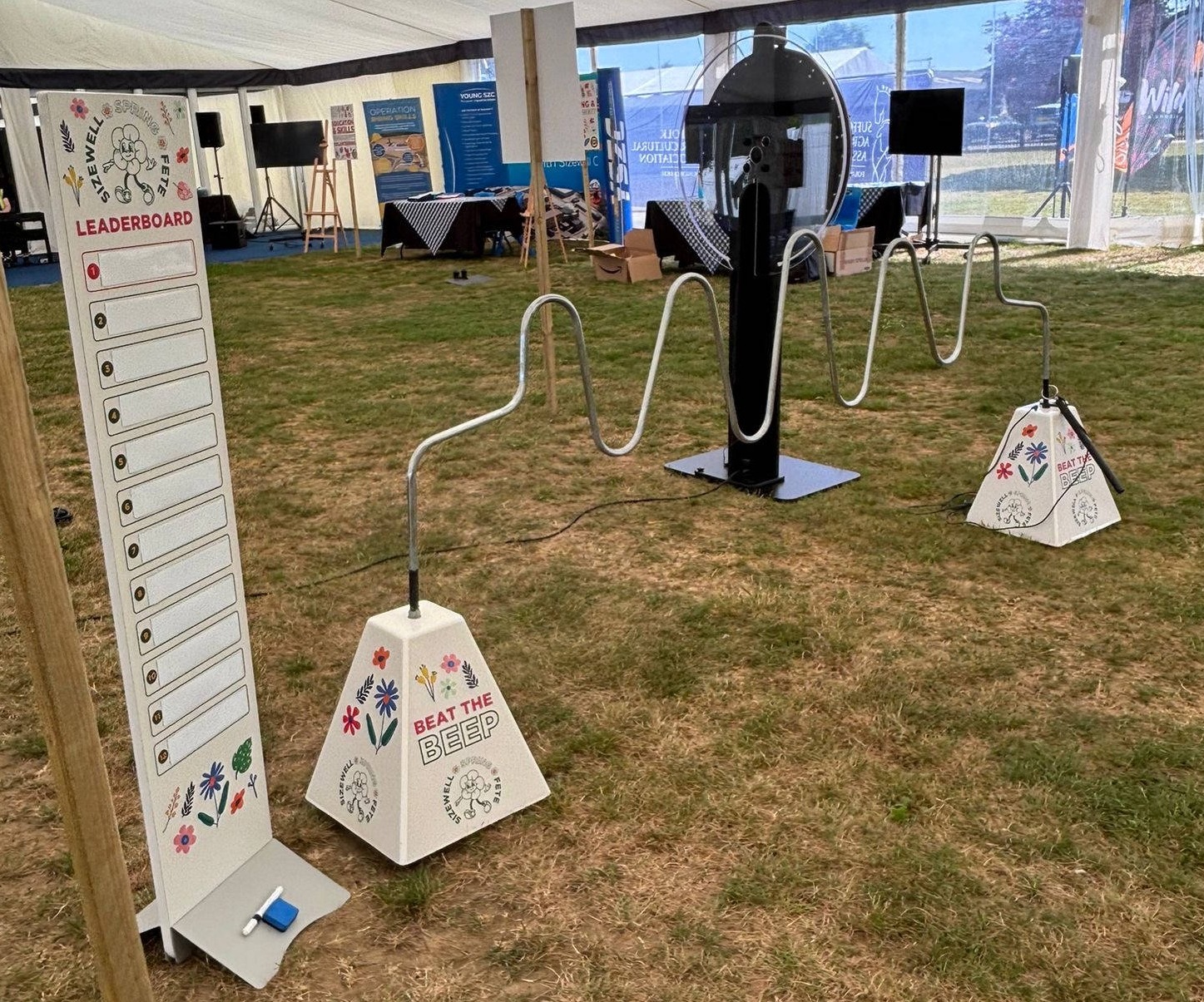 Our biggest buzz wire offering, these giant buzz wires or beat the bleep as we also know them are giant versions of the traditional steady hand game and features an LED light to indicated a hit. A real challenge can you make it across the wire without touching it and setting off the buzzer? A large digital timer is available free of charge on request to accompany our giant buzz wire games allowing the game to be timed and used for competitions, activations and promotions. (The buzz wire does not require power as its battery powered however if utilised the timer unit requires a standard 13 amp socket within 10m)